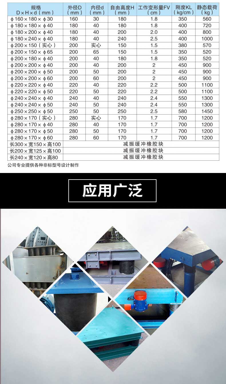 橡膠彈簧:是一種高彈性體,制作材料有普通橡膠。橡膠彈簧彈性模量小,受載后有較大的彈性變形,借以吸收沖擊和振動。它能同時受多向載荷,但耐高溫性和耐油性比鋼彈簧差。如有特殊要求可用耐油橡膠制成。該產品減振效果好,共振領域小,使用壽命長,成本低,還有良好的耐寒性,優良的氣密性,防水性,電絕緣性,是減振的最佳選擇。